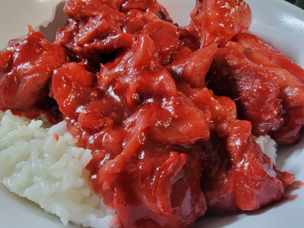 I haven’t been feeling absolutely great but this is always a comfort food so tonight’s dinner…. Chinese style sweet sour pork over sticky rice.