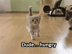 I’ll see your hungry kitty and raise you a Simon’s Cat youtube site. http://www.youtube.com/user/simonscat Recognize anything? 10 Feb 13 at 6:59 am