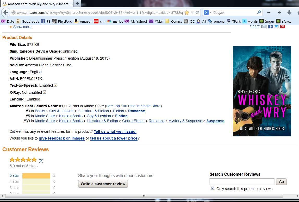 You all have brought Damie and Sionn to Number THREE in the Gay romance genre, Number FIVE in Gay Fiction and Number THIRTY-NINE in Mainstream Suspense/Romance. Dudes. Speechless.
