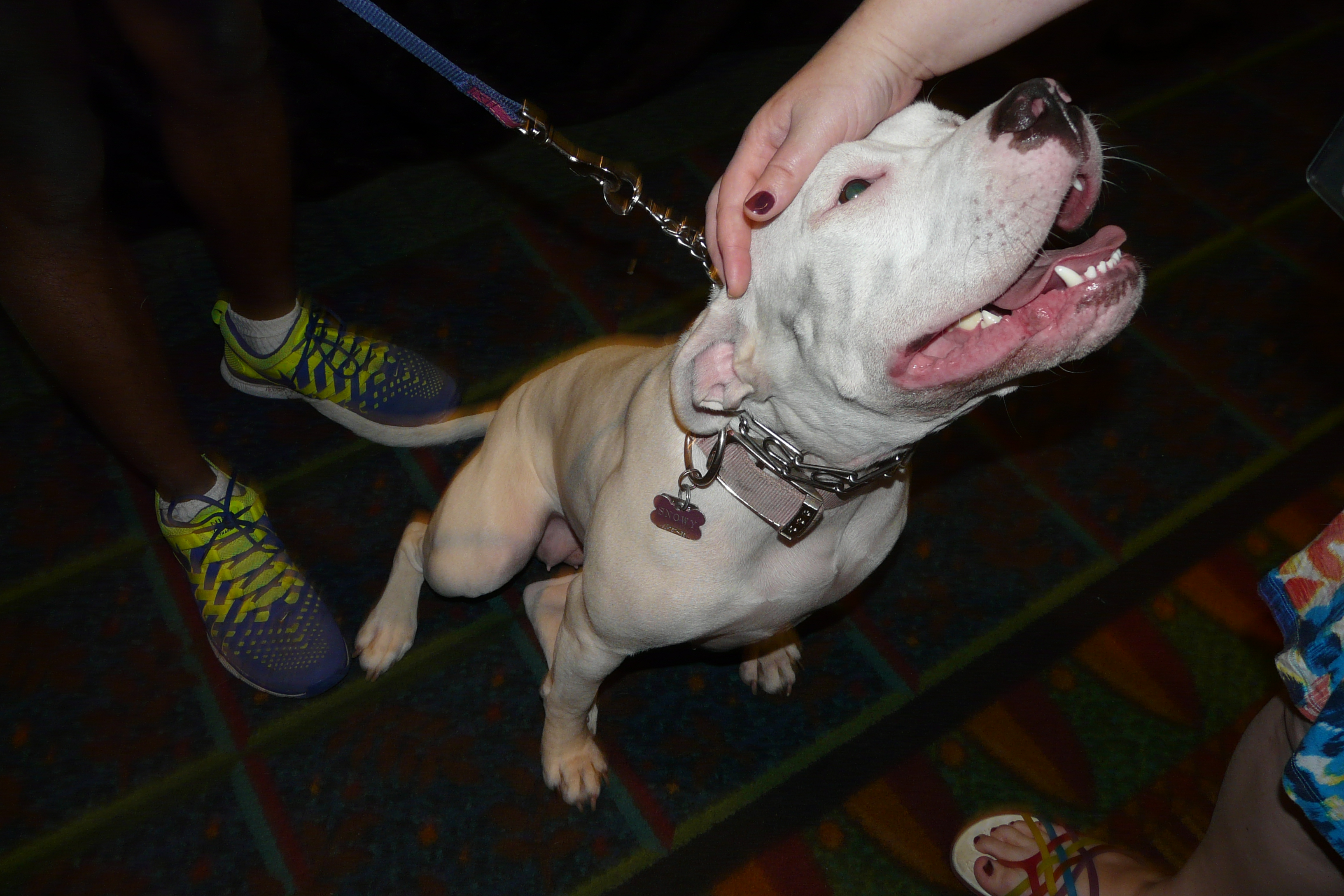 The hotel was dog friendly… and I was befriended by a white pit named Snowy who was simply a belly rub whore. Such a sweet dog.