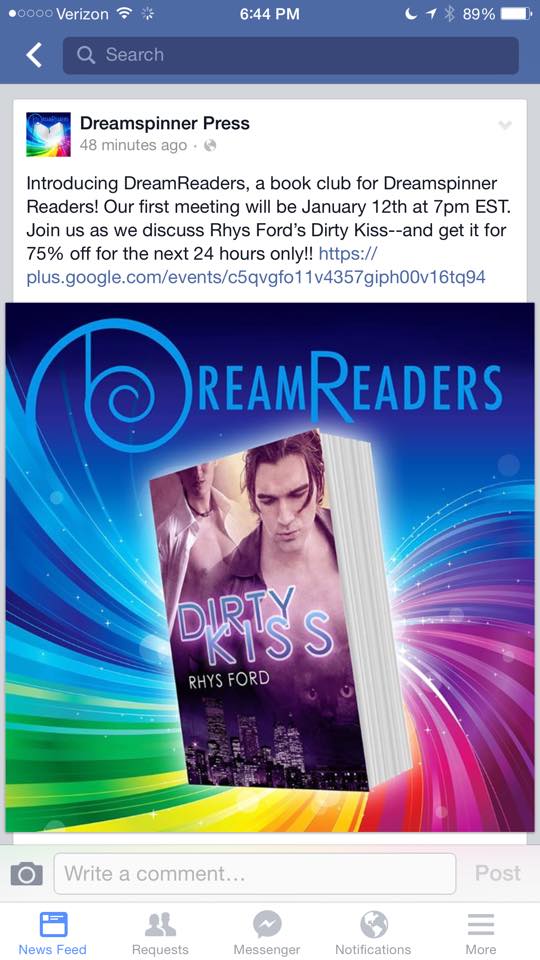 75% off at Dreamspinner Press. Sale ends 6:30ish Jan 6th!