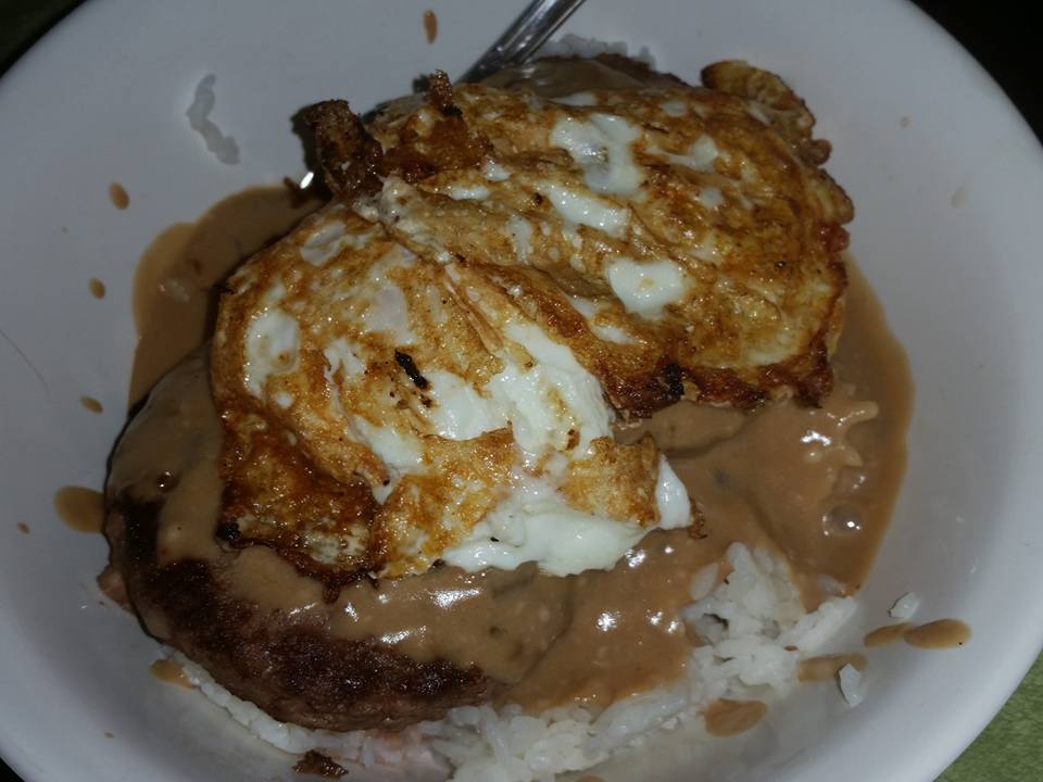 Tonight we’re having loco moco. A local-style dish from Hawai’i. There’s a lot of discussion on wh “created” this dish but for the most part, people say Cafe 100 in Hilo. It definitely came from Hilo. *grins*