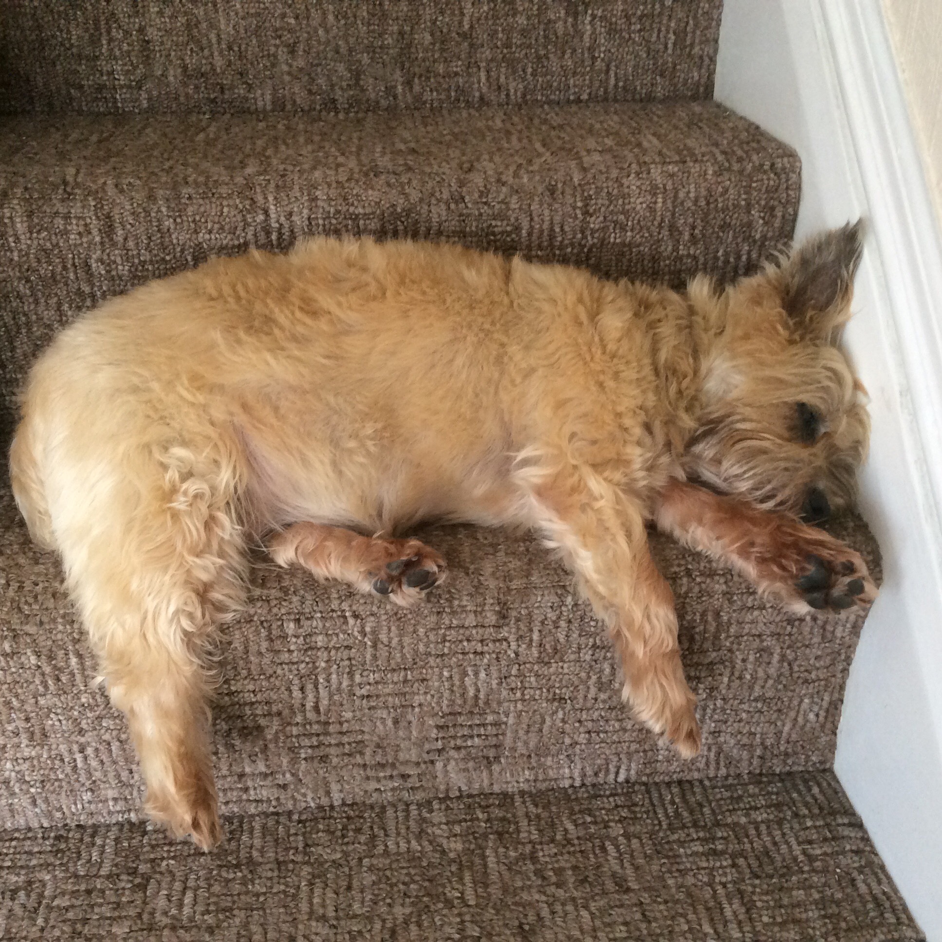 Today we puttered around Swindon and a few other places. The Cairn Mascot of the Five… the female one… joined us. It’s been a very long day for little blond doggies. Halle would like to tell you all she’s extremely tired and would appreciate small tidbits of bacon to be delivered to her place on the sofa.
