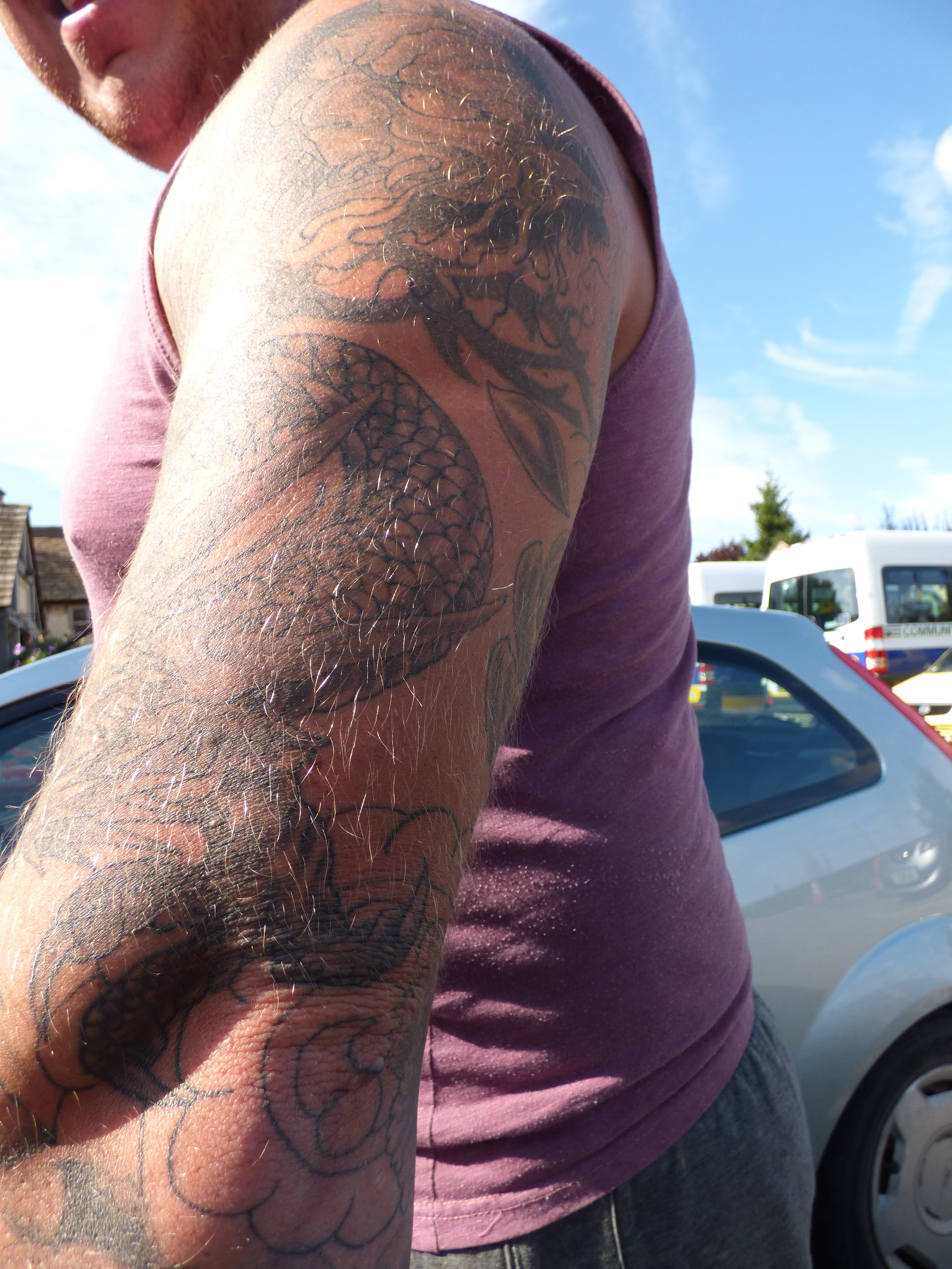 Outside were two workers and I got them to show me their ink. I shall share the pix. They were adorable. One had Maori markings and had just finished them. They were at the first peel stage. He was so sweet.