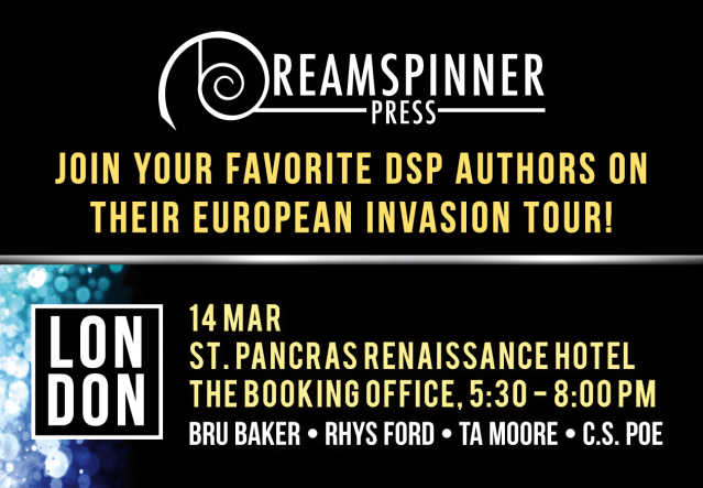 Actually, that’s a lie. I have no idea if The Booking Office has ever had gathering of authors before and I imagine since the hotel’s been there for a long time, I’m pretty sure it has BUT this will be the first time Bru Baker, Rhys Ford (me), TA Moore and Carroll S Poe will be there for a Readers’ Meet and we’d love to have you come see us!