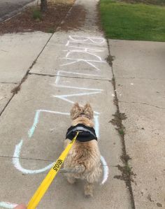 He goes on walks with his Aunt Jessica twice a week. Now, he’s an old man (cairns’ lifespan is 12-15) so his walks are regulated to give him exercise but not so much that it strains his joints. He’s 12 now and a very happy Potato but walks are SERIOUS business for him and there’s not time to talk and stop and smell the flowers. Once in a while he might roll around in some damp grass because that’s just too much to pass by but there’s no sniffing trees or looking for other dogs’ scents. Walks are for hard trots and his Aunt Jessica often has to slow his roll because there are PLACES TO BE in Gus’s mind, and he’ll keep setting a hard pace if you let him.