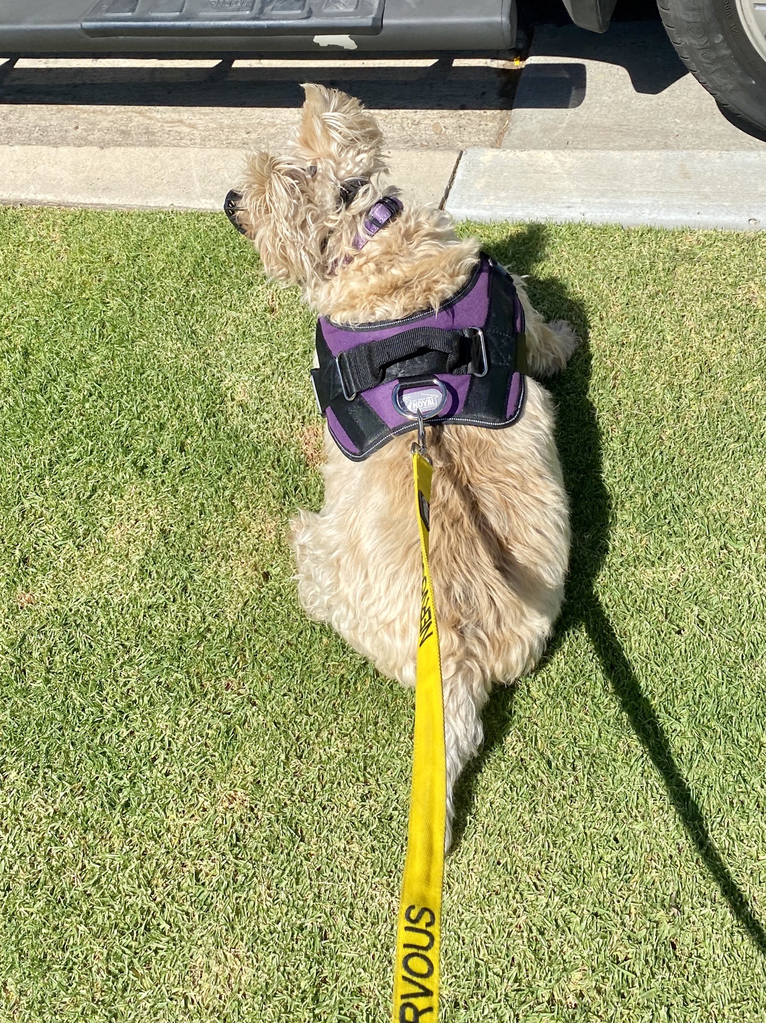It’s freaking hot but the Blond Potato bravely went outside with his favourite Auntie. He wasn’t awake enough when she arrived but soon rallied and began his day. He’s currently in cool down and sitting in the AC. In a little bit, he’ll go crash.