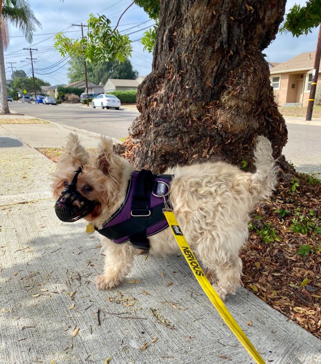 He came back, got water and lots of scritches from his Auntie before she left. Right now, he’s staring at his food dish with a soaking wet muzzle from snorkling in the water dishes around the house.