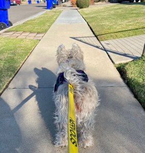 There were a lot of people out this morning so Gus was borking a lot! It was a little warm so I’m sure he’s very tired now. He was barely able to make it up the steps back in the house! Hope he gets plenty of water! Best, Jessica