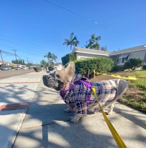 Gus looks so cute and cozy in his hoodie! I’m sure it kept his joints warm. He did poop on the grass again today! He’s been getting better at that. See him soon!