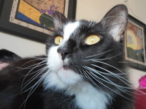 But he does have I NEED SNUGGLES moments. I wonder if he misses Jenn. He did love her so even with his nasty hissy personality which to be fair, sometimes she was nasty hissy too so they got on. I also know she loved him dearly and inheriting a cat often means you associate that cat with the person you lost. I try not to but I do wonder. And I hope she knows he’s loved and well-cared for. Because he is. He’s really a good cat. He tries so hard and while his nature is abrasive, he’s secure in knowing he can reach out and get love. So long as we keep his food dish full and his water bowl clean, oh and sometimes turn on the water faucet in the bathroom to a very low trickle so he can shove his head under it and drink. He’s an odd cat but I’m thankful for him.
