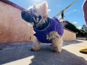 It was slow waking up for him because he was so comfy and snoring but I got him kitted up in his new jacket. When Paige got here, we let him decide if he wanted to go. He had a huge week with bathing, borking, and brushing as well as coming up onto my bed to sleep one night because he just wanted to. He used to sleep on my bed every night but… change is bad for the Borker and when I moved my bedroom around, he decided the bed was in a different dimension and he was just going to sleep on HIS bed in my room.
