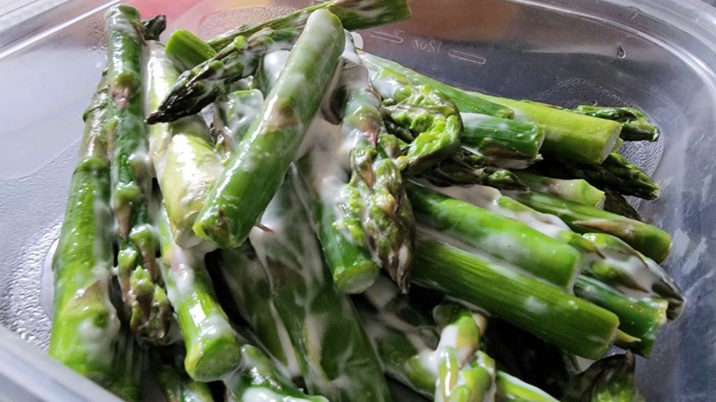 Tonight’s dinner: bulgogi, rice and asparagus with a garlic aioli dressing.